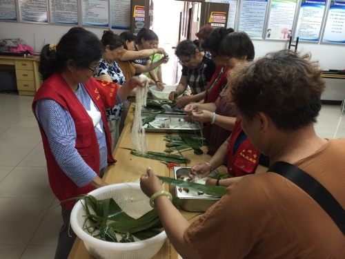 活动现场,粽叶飘香、气氛和谐。一片片清香的粽叶、一粒粒晶莹的糯米,在大家一双双巧手下转眼就变成了一个个诱人的粽子,大家一边包着粽子,一边话着家常,不过也有现学现卖的年轻人,包粽子时屡屡出现“纰漏”,好不容易包好了粽叶,糯米又漏了出来。年长的阿姨们耐心地手把手的教年轻人包粽子,好一幅邻里情,一家亲的图画,尽管技术参差不齐,但大家都很开心。